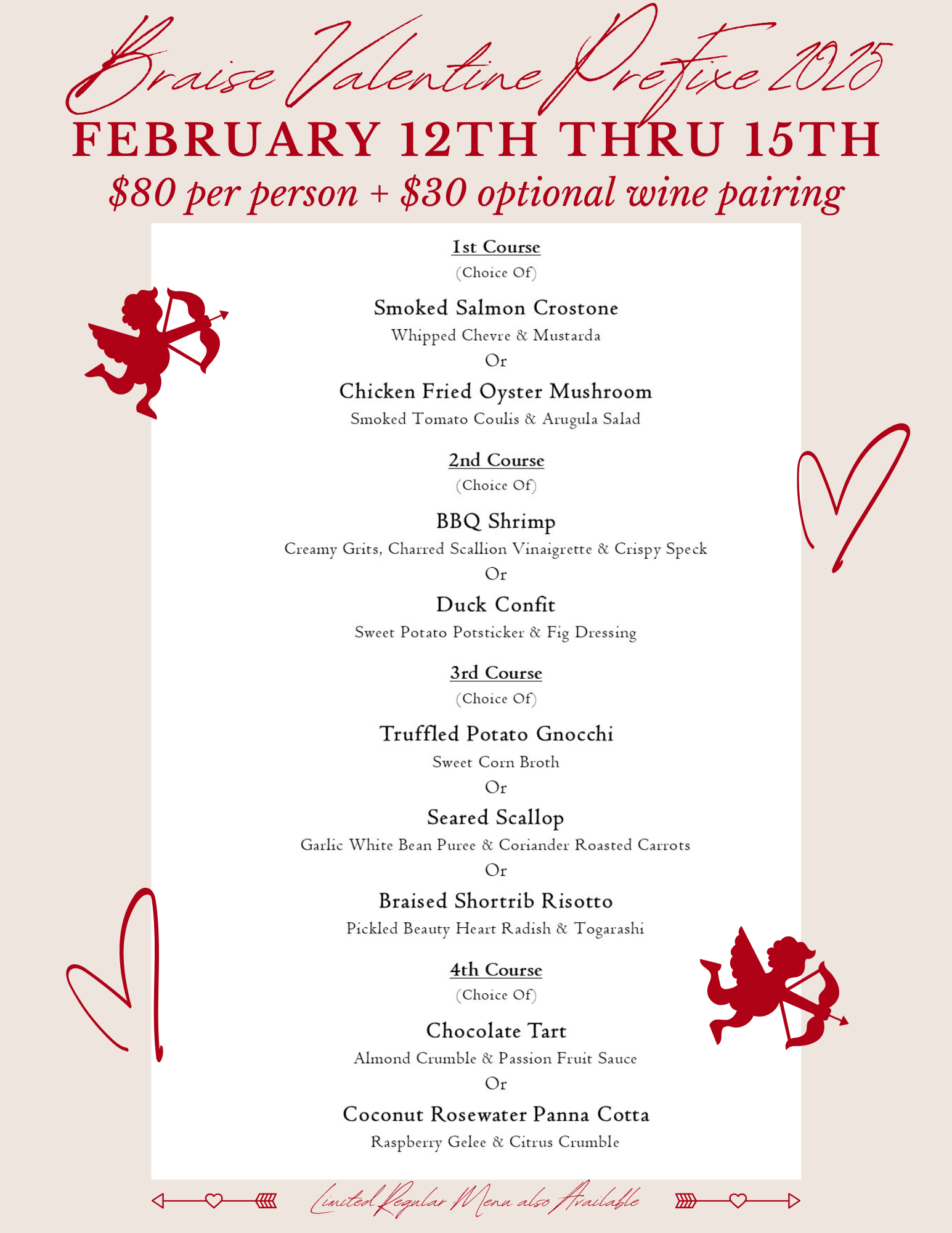 Valentine Prefixe Menu 2/12-2/15. Limited Regular Menu also Available.