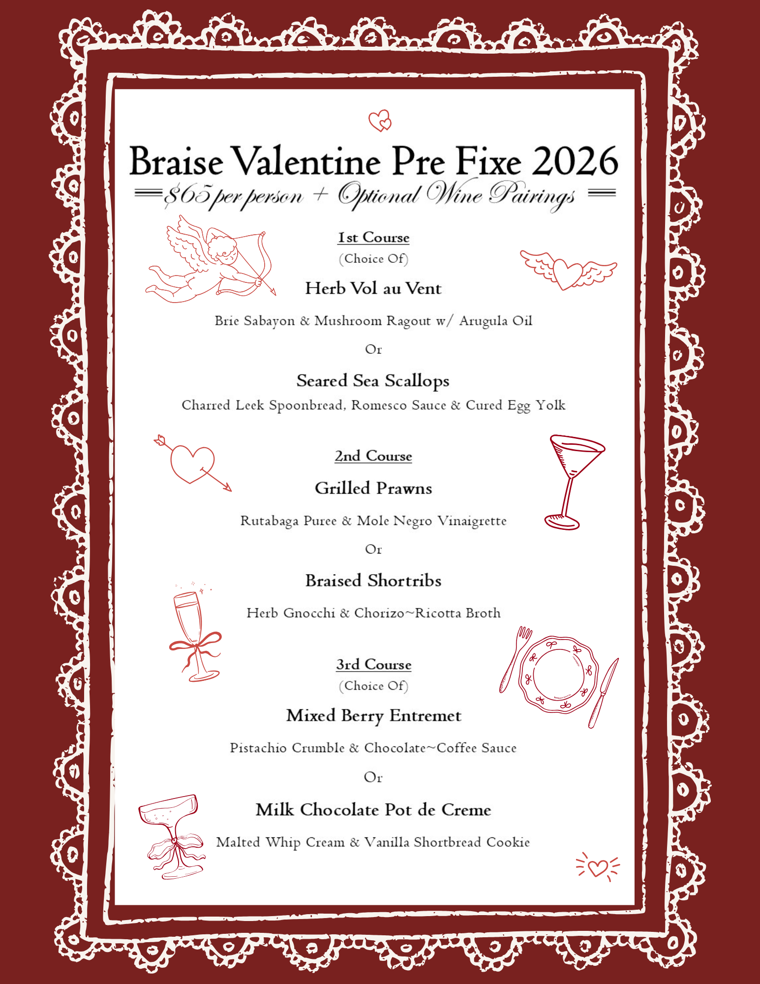 Valentine’s Prix-fixe Menu. Limited Regular Menu also Available.